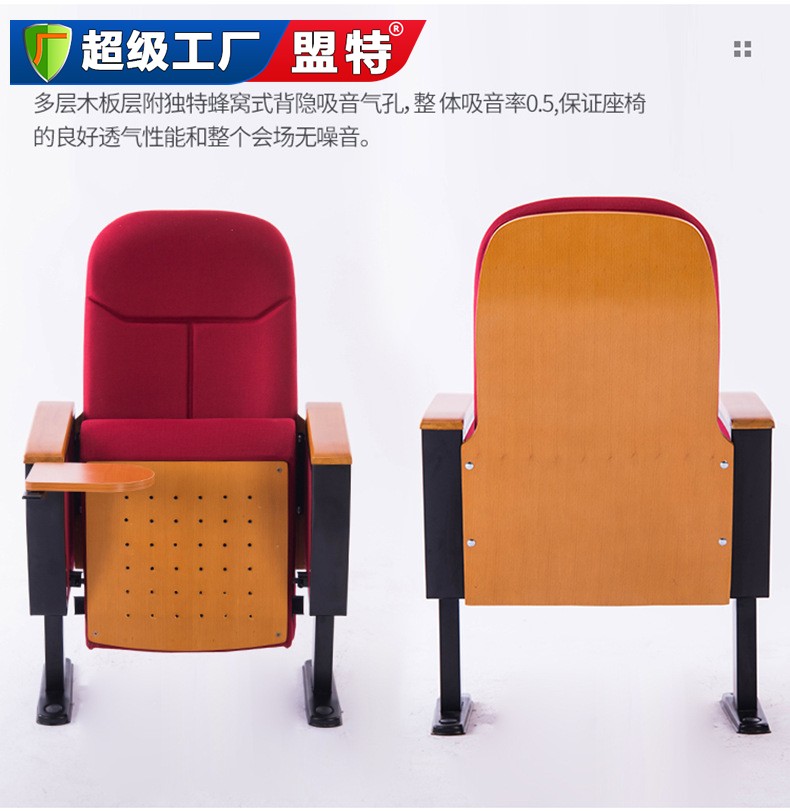 材质 说明1、椅座、椅背外壳:采用高密度硬木多层板(背板厚:17MM,座板厚:12MM),座板上设有多个吸音孔,以保持良好的吸音效果。