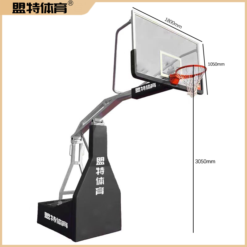 对于固定式篮球架,其基础固定方式直接决定了篮球架的稳定性。如前文所述,地埋式篮球架需要在安装地点挖掘合适深度和大小的坑洞,将篮球架的立柱放入坑中,然后用混凝土进行浇筑固定。在浇筑混凝土时,要确保混凝土的质量和浇筑的密实度,以保证篮球架的立柱能够与地面牢固结合。液压篮球架则通常通过预埋件与地面连接,预埋件在安装前需根据篮球架的尺寸和重量进行合理设计和安装,确保预埋件能够承受篮球架在使用过程中产生的各种作用力。对于移动式篮球架,其稳定性主要依赖于底部的配重设计。一般来说,移动式篮球架的底部会配备水箱或沙袋等配重装置,在使用前需将配重装置加满水或沙袋,以增加篮球架的整体重量,防止篮球架在使用过程中发生倾倒。同时,要定期检查配重装置是否完好,如有漏水或沙袋破损的情况,应及时进行修复或更换。​